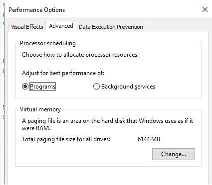 - Control Panel -> System -> Advanced system settings (on the left side) -> Advanced Tab -> Performance
