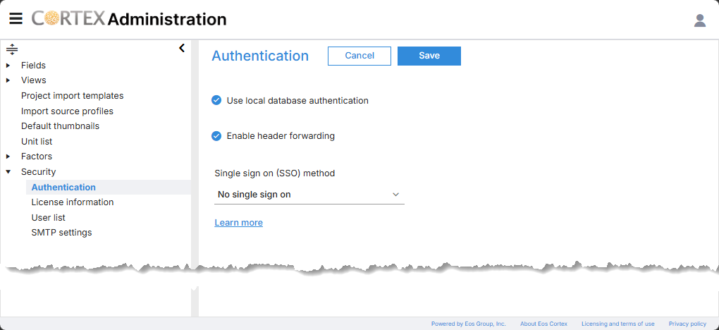 - Record the configuration in Eos Cortex > Security > Authentication settings, and test.
