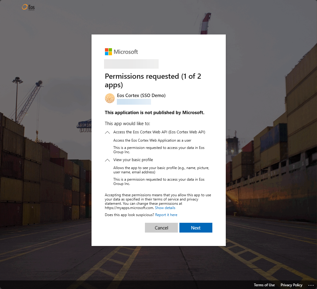 - User consent description: Access the Eos Cortex Web Application as a user
