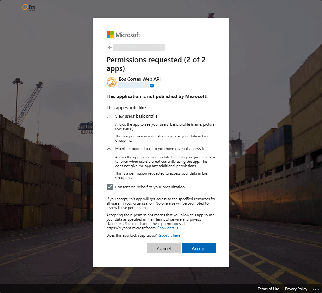 - Admin consent description: Access the Eos Cortex Web Application as a user